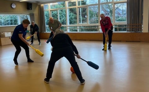 De lessen zijn afwisselend en gezellig. “We beginnen met grondoefeningen en daarna doen we een spel zoals badminton of knotshockey. Leonard verzint elke week weer iets anders. Binnenkort gaan we zelfs naar de tennishal voor een tennis-, squash- en een pickleballclinic. We hebben ook al een keer aquarobics, kickboksen en tafeltennis gedaan.”