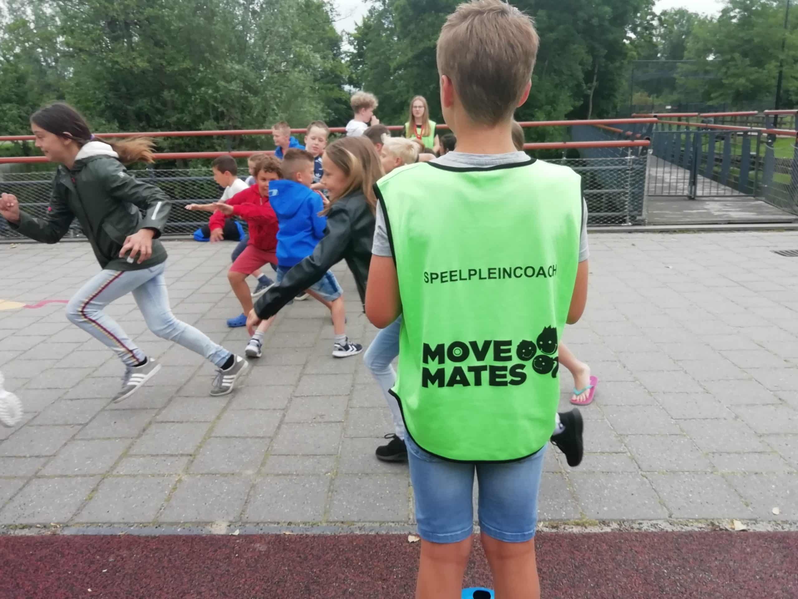 Een pauze vol beweging en plezier, dat zien wij graag op elke basisschool. Move Mates is een project waarbij kinderen worden gestimuleerd om in beweging te komen op het schoolplein. De leerlingen van groep 7 worden door Team Sportservice Krimpenerwaard opgeleid tot speelpleincoach. In zes weken leren de leerlingen spelactiviteiten op te zetten, hoe ze kinderen kunnen stimuleren om mee te doen en hoe ze moeten handelen in conflictsituaties. Dit alles leidt tot een pauze vol plezier en beweging!
