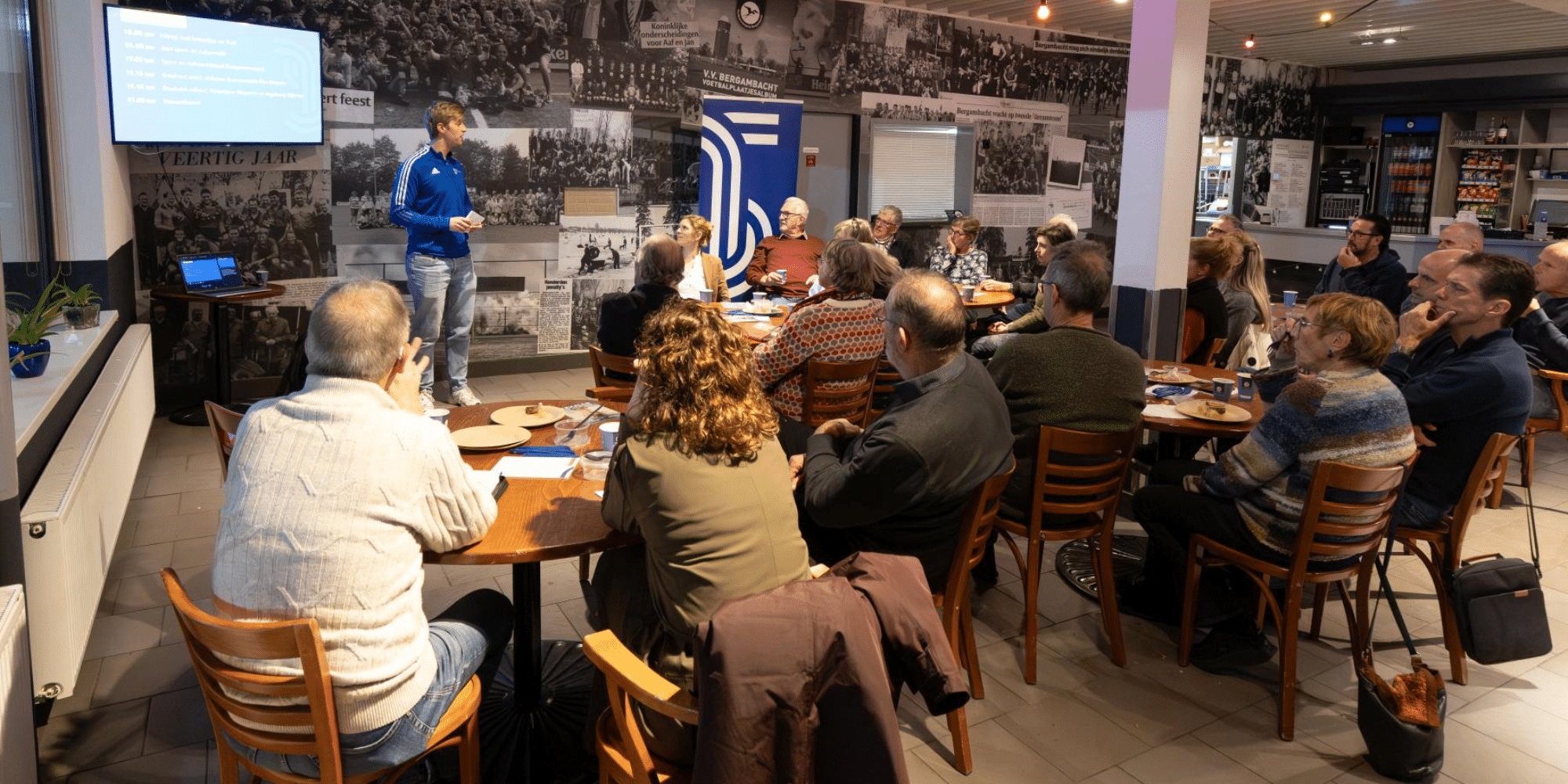Op woensdag 26 november organiseerde Team Sportservice bij VV Bergambacht een Sport- en Cultuurcafé. Bestuursleden, commissieleden en vrijwilligers van sportclubs en cultuurinstellingen uit de gemeente Krimpenerwaard werden deze avond wegwijs gemaakt in de wereld van fondsen en subsidies. Een belangrijk onderwerp en de avond was dan ook druk bezocht: er waren maar liefst zo’n veertig vertegenwoordigers van dertig organisaties aanwezig. Team Sportservice introduceerde tijdens de avond ook de Clubscan. Hiermee ontdekken sportclubs hoe zij scoren op thema’s als sportaanbod, technisch kader, vrijwilligers, financiën en sociaal veilige sportomgeving. De Clubscan brengt in kaart op welke gebieden zij ondersteuning nodig hebben. De sportclubs kunnen dit vervolgens met de clubondersteuner van Team Sportservice bespreken.
