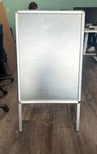 Stoepborden waarin A1 posters in geschoven kunnen worden.