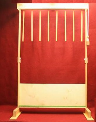 Door aan één van de acht touwtjes te trekken zal er een stok vallen. Degene die aan de touwtjes trekt kan niet weten welke stok er zal vallen. Wie vangt de meeste, of alle acht, stokken?