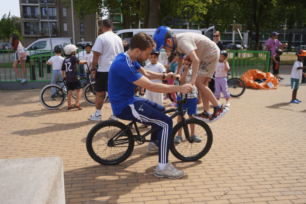 We sloten de dag af met een waanzinnige BMX-clinic van Sietse van Berkel. De kinderen leerden van alles over het gebruik van de BMX, verschillende trucjes en mochten zelf de fietsen testen. Een gave workshop waar de kinderen enthousiast aan deelnamen.